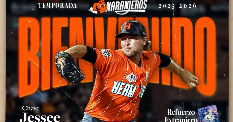 NSN: El lanzador Chase Jessee se integra a los Naranjeros de Hermosillo para apoyar en el bullpen en la temporada 2025-2026 de la Liga ARCO Mexicana del Pacífico.