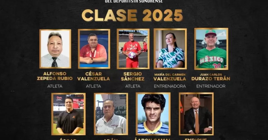 La Clase 2025 del Salón de la Fama del Deportista Sonorense, determinada a través del proceso coordinado por la Comisión del Deporte del Estado de Sonora (Codeson), estará conformada por nueve integrantes que, a lo largo de su trayectoria, han puesto en alto el nombre de Sonora en distintas ramas deportivas.