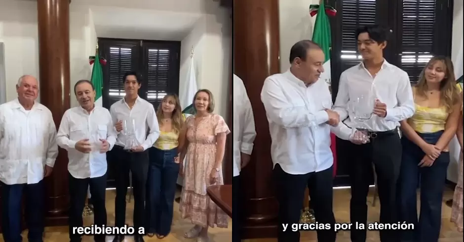 "Es un joven sonorense que con un gran esfuerzo personal, obvio, se ha ido formando a niveles profesionales que lo han hecho merecedor a esta copa. Mi querido Carlos, me llenas de orgullo, eres un ejemplo para la juventud sonorense, te felicitamos y gracias por la atención de venir a compartir este triunfo", expresó.