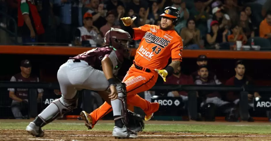 Naranjeros empató nuevamente la pizarra en la parte baja del séptimo inning gracias a elevado de sacrificio del emergente Edson García que envió en pisa y corre desde tercera base a Willie Calhoun con la octava carrera de Hermosillo que empató la pizarra.