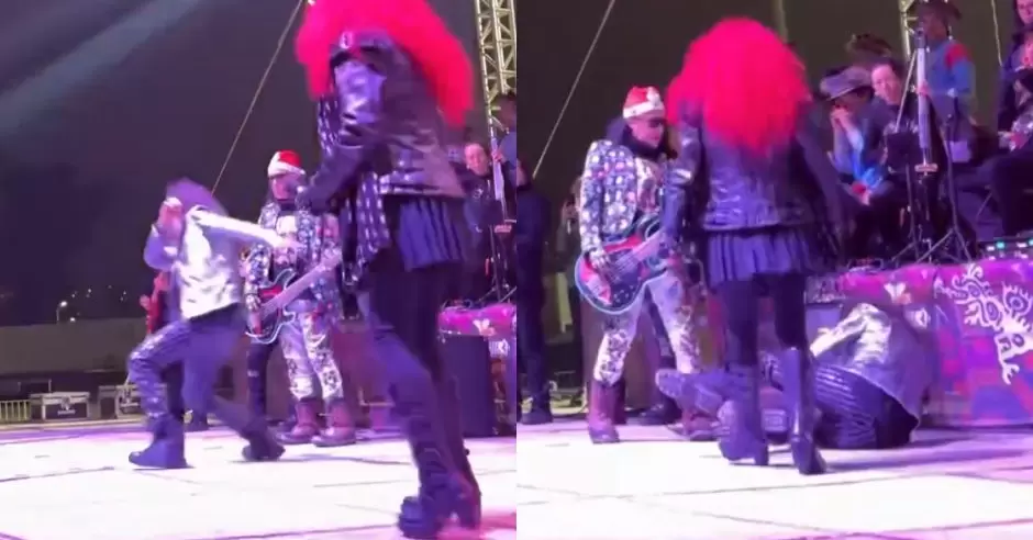 El cantante, de 71 años, se encontraba ofreciendo un concierto cuando de repente pateó una pelota al público y poco a poco se fue para atrás hasta que cayó sentado.