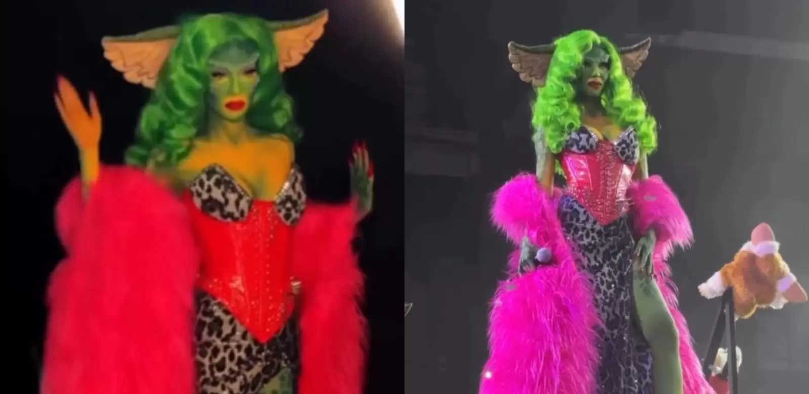 La cantante, de 36 años, se vistió de uno de sus personajes favoritos: Greta, usando un vestido con estampado de leopardo con un corset rojo brillante.