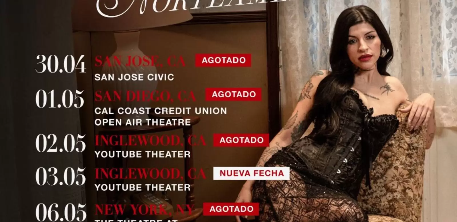 Los conciertos programados que ya registran entradas agotadas incluyen shows en San José y San Diego, California, Inglewood, donde incluso se abrió una segunda fecha por demanda, Nueva York, San Antonio y Houston, todos ellos con localidades completamente vendidas.