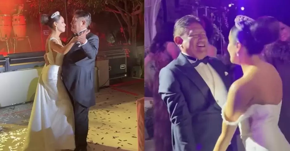 Otra de las escenas, compartidas por la televisora, fue el momento en que los novios entraron al salón de fiestas; bailando y tomados de la mano, se acercaron a una mesa en donde estaba un pastel que cortaron juntos.