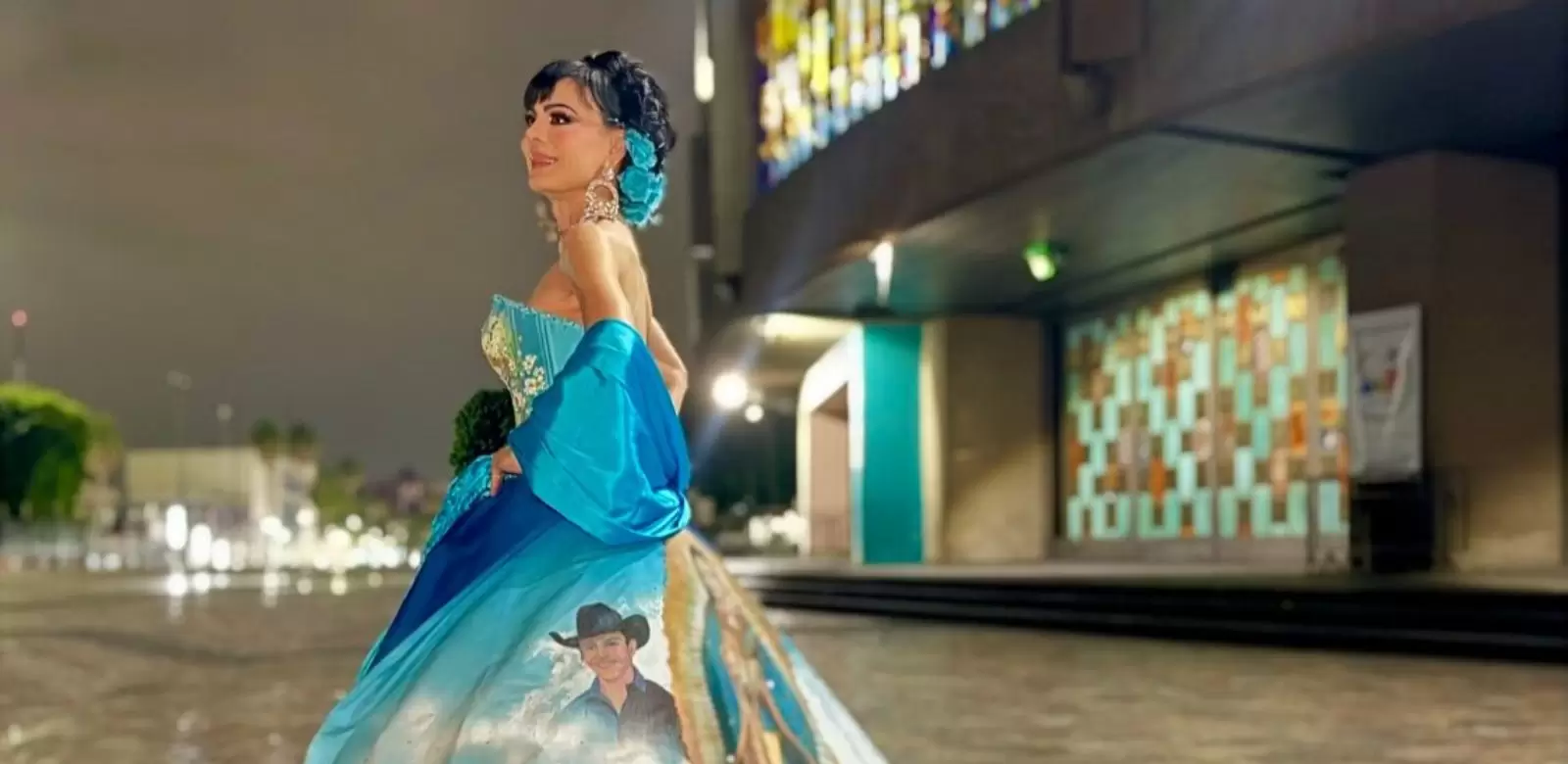 El atuendo que eligió Guardia, diseñado por el modisto Mitzy, incorporaba la imagen de la Virgen de Guadalupe junto con figuras angelicales y, en un lugar central, el rostro de su hijo Julián.