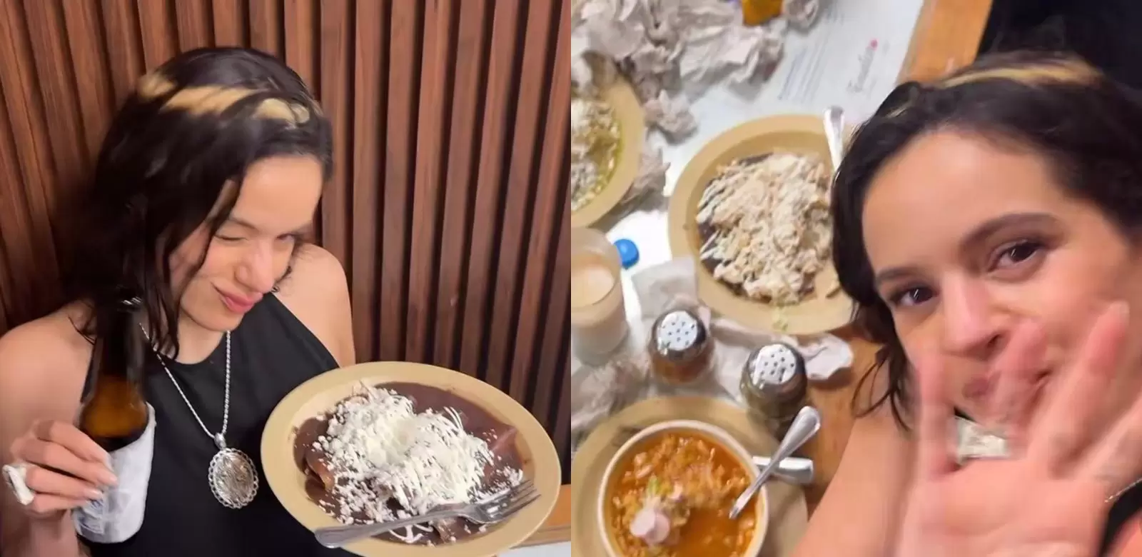 "Primera vez que como pozole, chicos... huele bien. Pica, es traicionero, pica, pero está muy bueno. Me gusta, me sorprende que tenga lechuga", dijo Rosalía.