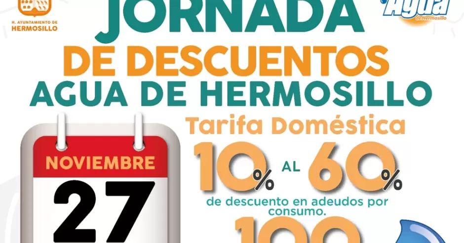Este jueves 27 de noviembre, Agua de Hermosillo llevará a cabo una jornada especial de descuentos dirigida a usuarios con adeudos.