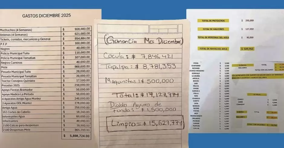 De acuerdo con los registros obtenidos por El Universal, en diciembre de 2025 el grupo criminal habría generado ganancias "limpias" superiores a 15 millones de pesos, principalmente de operaciones en Tapalpa y Cocula, así como de la venta de cristal, marihuana, fentanilo y divisas estadounidenses.