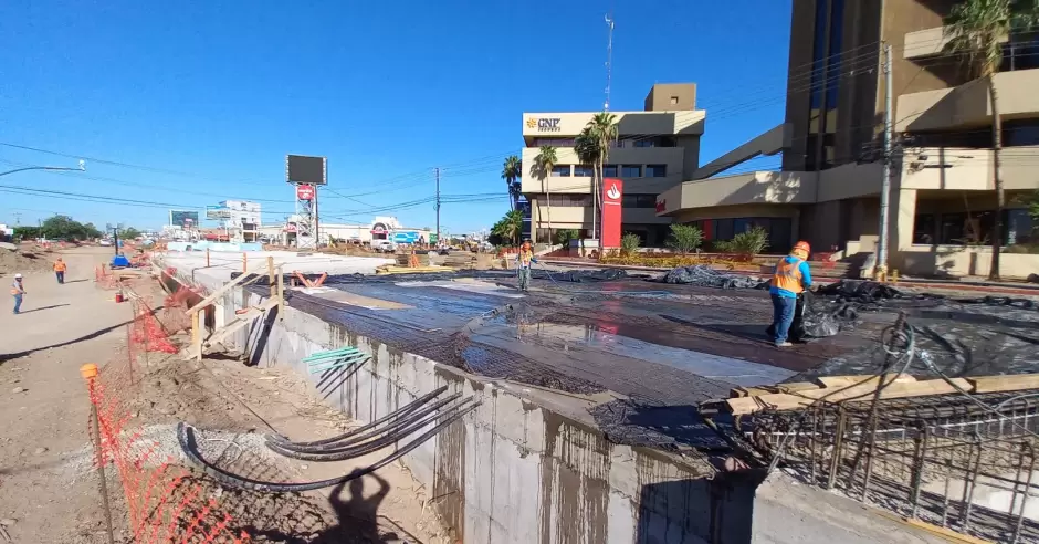 HERMOSILLO.- Un 62% de avance registran los trabajos de construcción del paso a desnivel en los bulevares Solidaridad y Colosio, informó el alcalde de Hermosillo, Antonio Astiazarán Gutiérrez.