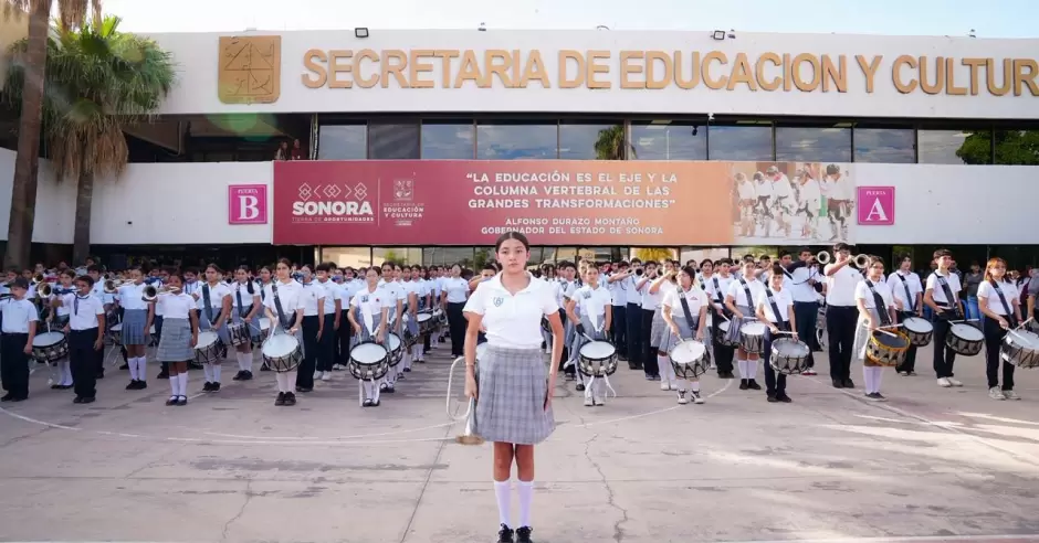 "Son alumnos de seis secundarias, principalmente de secundarias de aquí de Hermosillo y empezamos los ensayos en la explanada de la Secretaría de Educación y Cultura, y de ahí, nos vamos a ir al estadio Fernando Valenzuela, para que nos de la amplitud cuando hagan el recorrido", dijo.