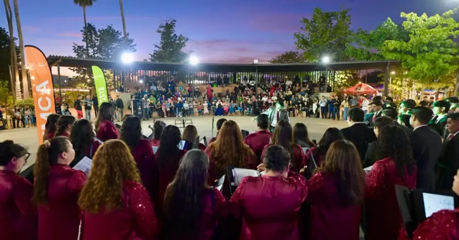 El presidente municipal junto a Marianna González Gastélum, directora del IMCA, recorrieron el emblemático y recientemente renovado Jardín Juárez, donde asistentes disfrutaron de las presentaciones del Coro Orfeón Sonora y Norteño sin Sombrero, quienes convirtieron este espacio público en un punto de encuentro cultural y familiar con un ambiente decembrino.
