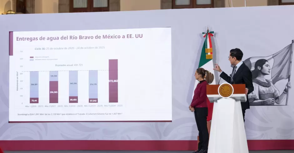 La mandataria aseguró que su gobierno mantiene pláticas permanentes con autoridades estadounidenses para encontrar una salida que permita cumplir con los compromisos internacionales, pero sin poner en riesgo el consumo humano de agua ni los derechos de los agricultores nacionales.
