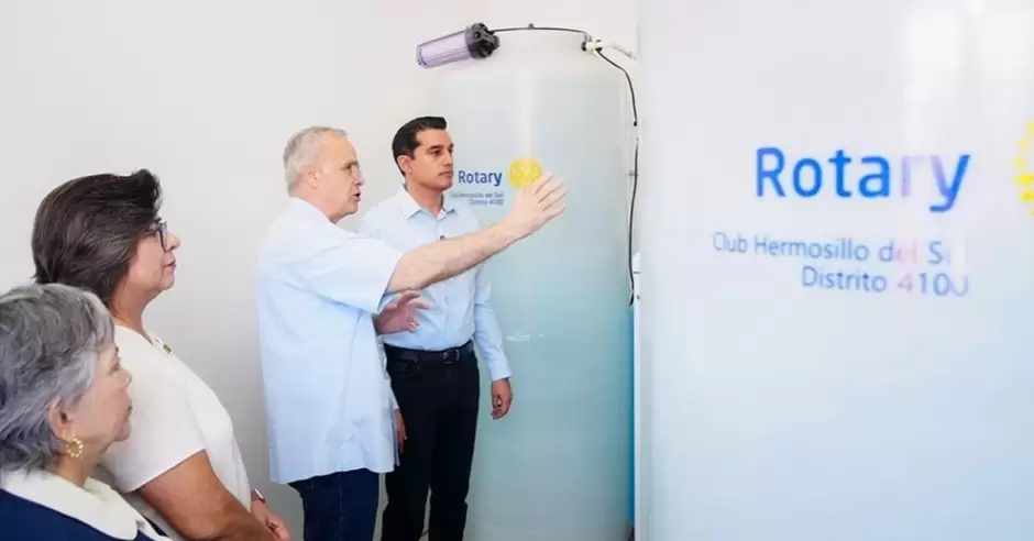 Para favorecer el acceso a agua segura, limpia y de calidad para el consumo diario de más de mil alumnos, el Gobierno de Sonora, a través de la Secretaría de Educación y Cultura (SEC), recibió la donación de una planta purificadora de agua por parte del Club Rotario Hermosillo Del Sol.