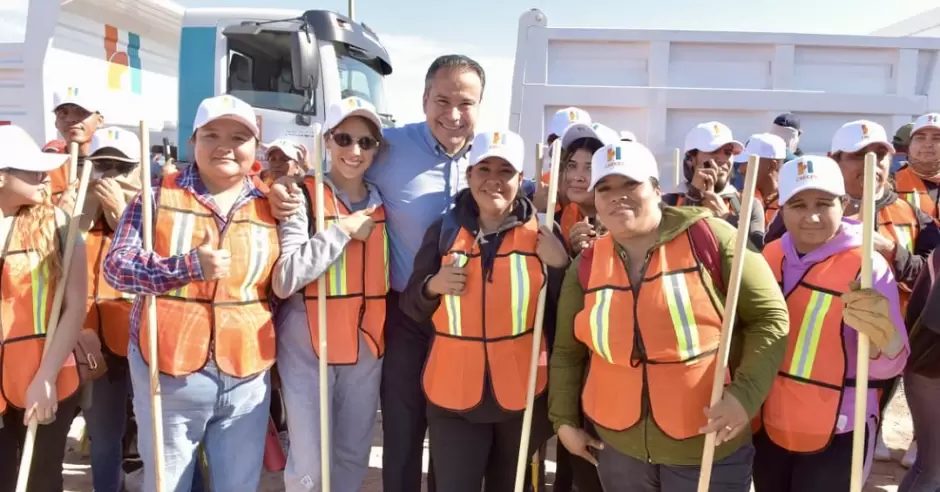El presidente municipal acompañó el primero de los despliegues de limpieza de alto impacto, que tuvo lugar bulevar Carlos Quintero Arce, entre Serna y Paseo Río Sonora, donde ofreció un testimonio de agradecimiento al personal operativo participante, que incluyó a empleados de Parques y Jardines y Sanidad y Limpia de Servicios Públicos Municipales.