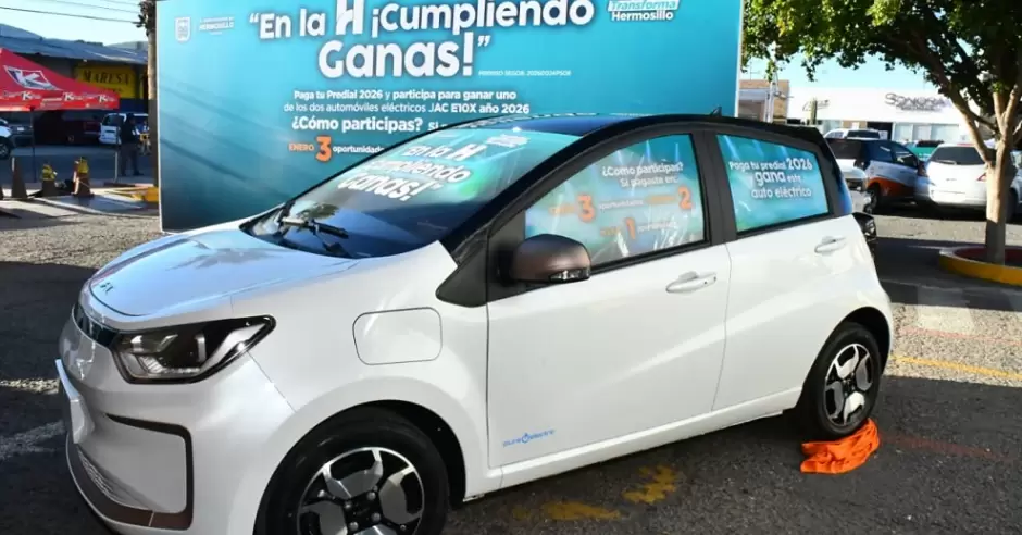 El Ayuntamiento de Hermosillo realizará el sorteo de dos autos eléctricos nuevos JAC E10X 2026 a los contribuyentes que paguen el predial en los primeros tres meses del presente año, anunció el alcalde Antonio Astiazarán Gutiérrez.