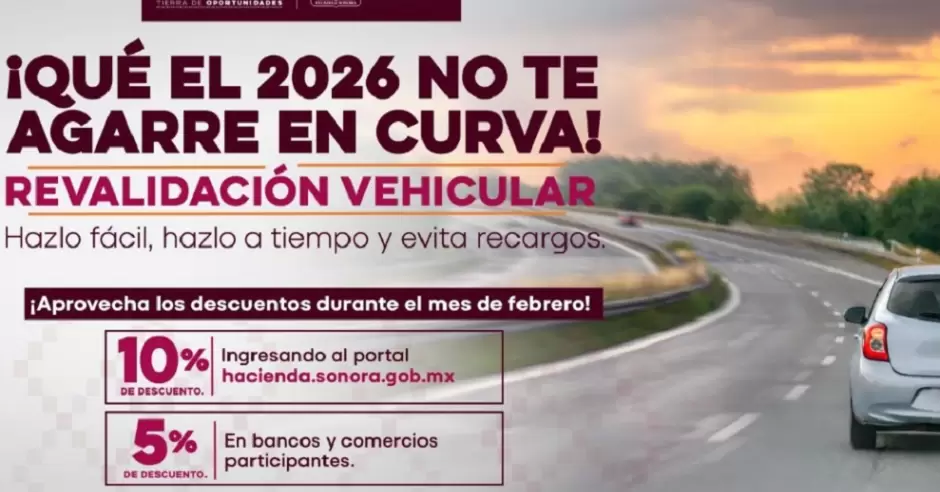 El Gobierno de Sonora, a través de la Subsecretaría de Ingresos de la Secretaría de Hacienda, continúa ofreciendo descuentos para la revalidación vehicular 2026 durante los meses de febrero y marzo.