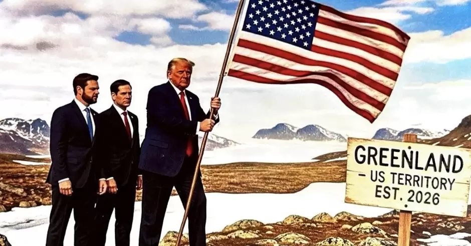 Más tarde, Trump posteó una foto realizada con inteligencia artificial donde aparece con una bandera estadounidense, acompañado por el secretario de Estado, Marco Rubio, y el vicepresidente JD Vance, y un letrero que dice: "Groenlandia. Territorio estadounidense. 2026".