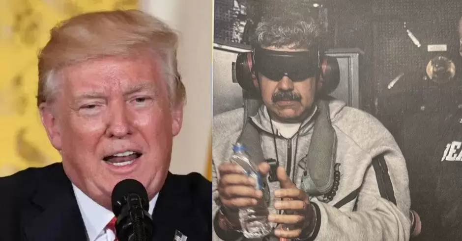 ESTADOS UNIDOS.- El presidente de Estados Unidos, Donald Trump, compartió este 3 de enero de 2026 en su plataforma Truth Social la primera imagen auténtica de Nicolás Maduro bajo custodia estadounidense, horas después de la operación militar que lo capturó junto a su esposa Cilia Flores en Caracas.