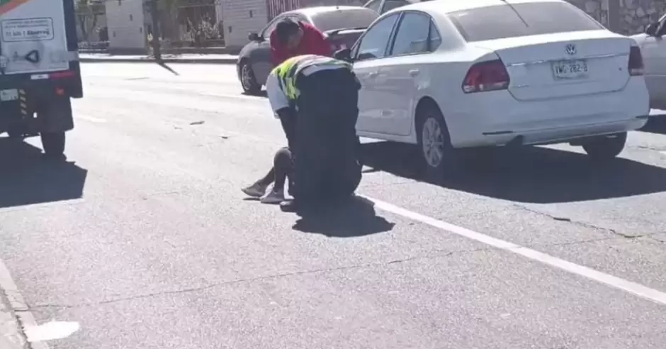 También arribaron paramédicos de la Cruz Roja, quienes revisaron a la universitaria, la cual se quejaba de dolor en la pierna derecha.