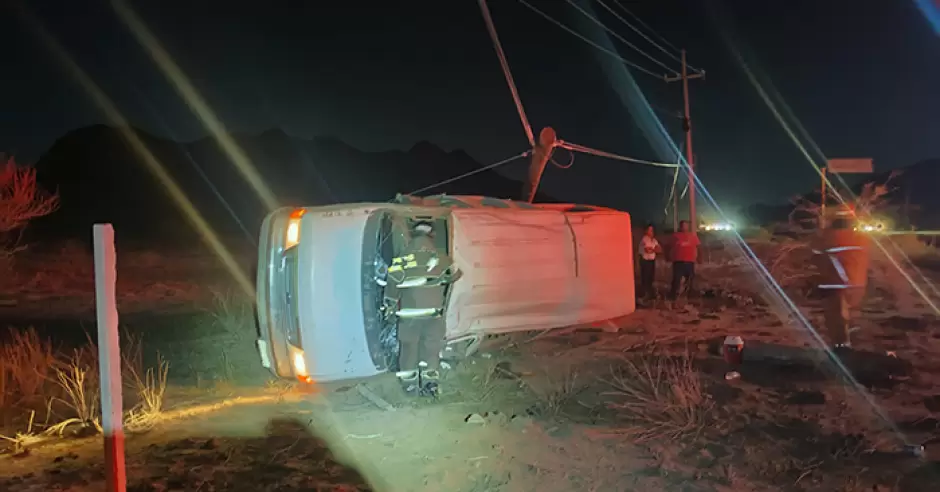 HERMOSILLO.- Una persona con lesiones y daños materiales cuantiosos dejó un accidente vial tipo choque volcadura, ocurrido la tarde del sábado en la Carretera 100 que conduce a la comisaría Miguel Alemán y a Bahía de Kino