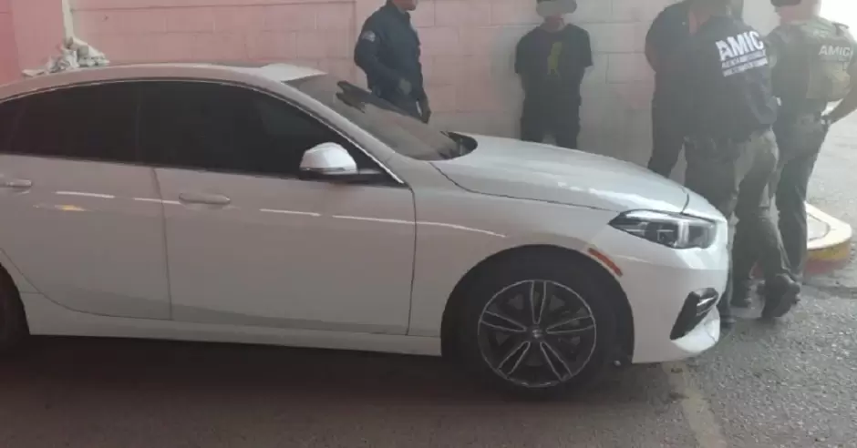 En la intersección del bulevar Progreso y la calle Reyes, los agentes interceptaron el vehículo BMW blanco, en el que viajaban los tres sospechosos.