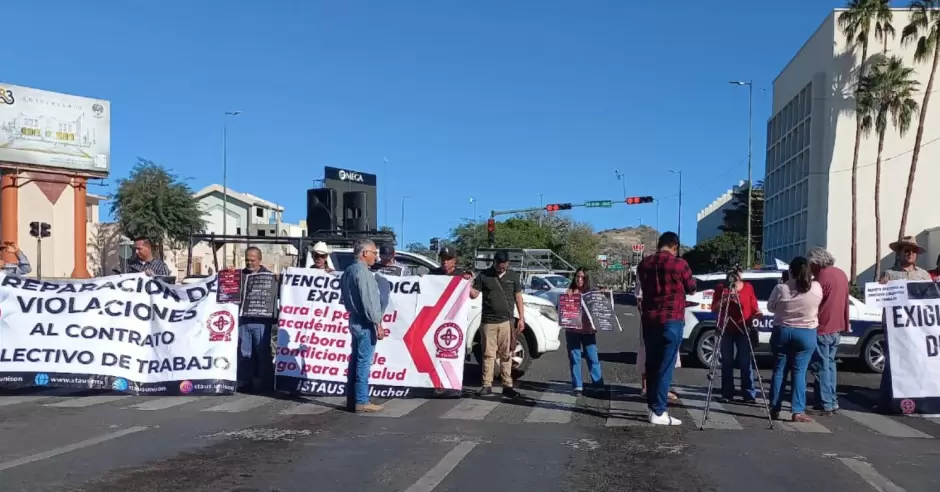 Agremiados del Sindicato de Trabajadores Académicos de la Universidad de Sonora (Staus) bloquearon por aproximadamente una hora el sentido vial de poniente a oriente del bulevar Luis Encinas con Rosales en apoyo al doctor en Física, Ricardo Ortega Arenas, quien mantiene una huelga de hambre desde el pasado 19 de diciembre, para exigir a la Unison que lo reconozca en el nivel D del tabulador salarial ya que actualmente está en nivel A.