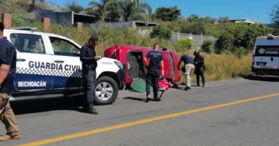 El vehículo quedó volcado a un costado de la carretera.
