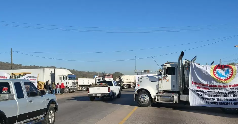 NOGALES, Son.- La carretera federal México 15, principal vía de acceso a Nogales y a la frontera con Estados Unidos fue bloqueada la mañana de este martes 16 de diciembre por transportistas, trabajadores y empresas que participan en la construcción del proyecto de Reubicación de Vías Férreas Nogales-Ímuris, quienes exigen el pago de adeudos acumulados que, aseguran, superan los 4 mil millones de pesos.