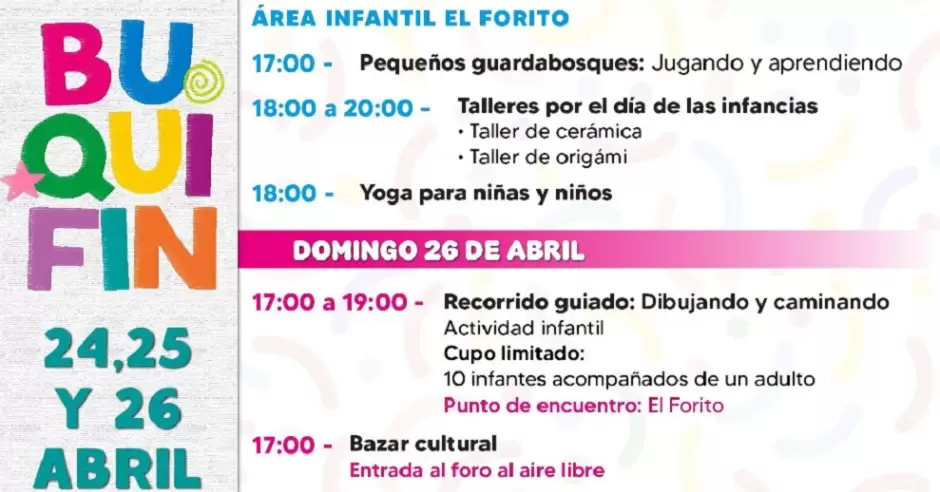 El Gobierno del Estado de Sonora invita a las familias a ser parte del Buqui Fin, un fin de semana especialmente diseñado para las infancias, que se llevará a cabo el 24, 25 y 26 de abril en el Bosque Urbano La Sauceda.