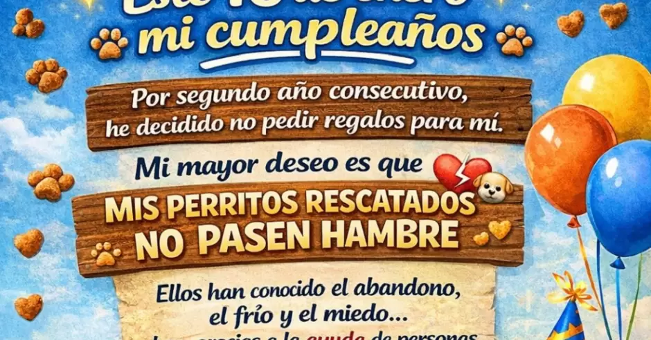 "Este es el segundo año consecutivo que realizamos esta actividad, en la que cambiamos las buenas vibras y bendiciones que normalmente se expresan en los cumpleaños, por croquetas o apoyo económico para disminuir las cuentas veterinarias", expresó.