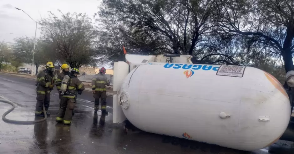 En el lugar, elementos de Bomberos y Protección Civil realizaron maniobras para dispersar el gas de la pipa, además de establecer amplios cortes a la circulación, con el fin de proteger a habitantes y automovilistas.