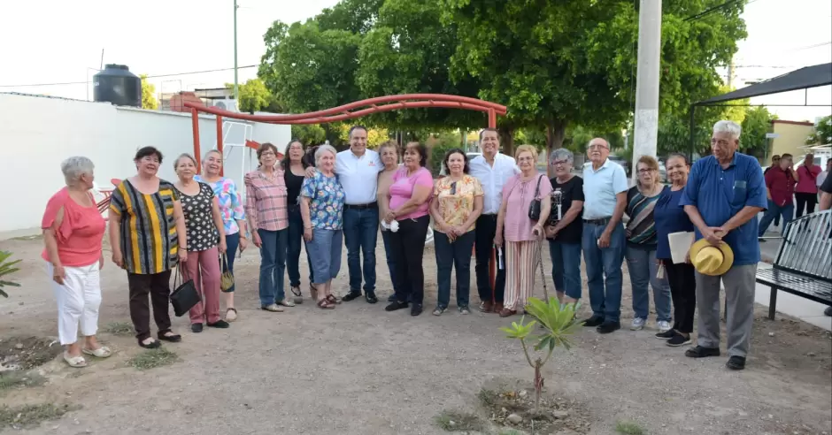 Las mejoras incluyen la instalación de nuevas bancas, ejercitadores, juegos infantiles, rehabilitación de kiosko, sistema de riego por goteo, construcción de banquetas e iluminación con una inversión de 774 mil 544 pesos.