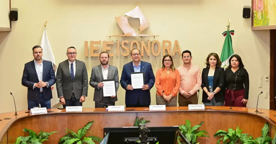 Sonora.- Para promover, entre trabajadores y comensales, la participación activa en las votaciones del 2 de junio de 2024, el Instituto Estatal Electoral y de Participación Ciudadana (IEE Sonora) y la Cámara Nacional de la Industria de Restaurantes y Alimentos Condimentados (Canirac) Sonora, firmaron este martes 21 de noviembre un convenio de colaboración que fortalece la cultura democrática.