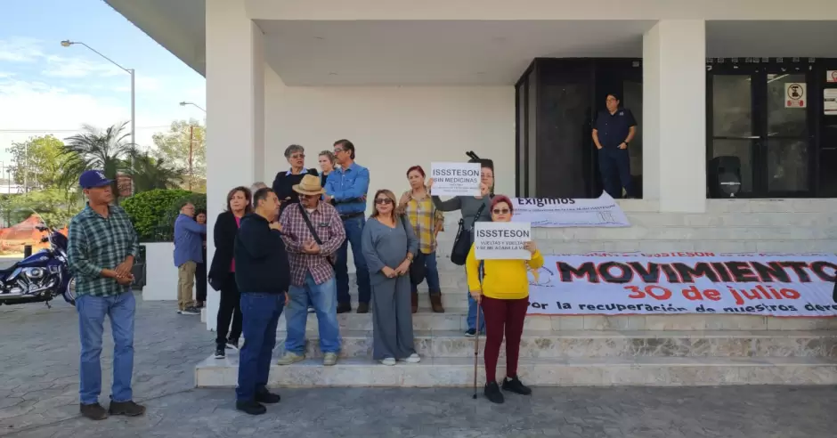 HERMOSILLO.- Integrantes del Movimiento 30 de Julio se manifestaron este jueves a las afueras del Congreso del Estado.