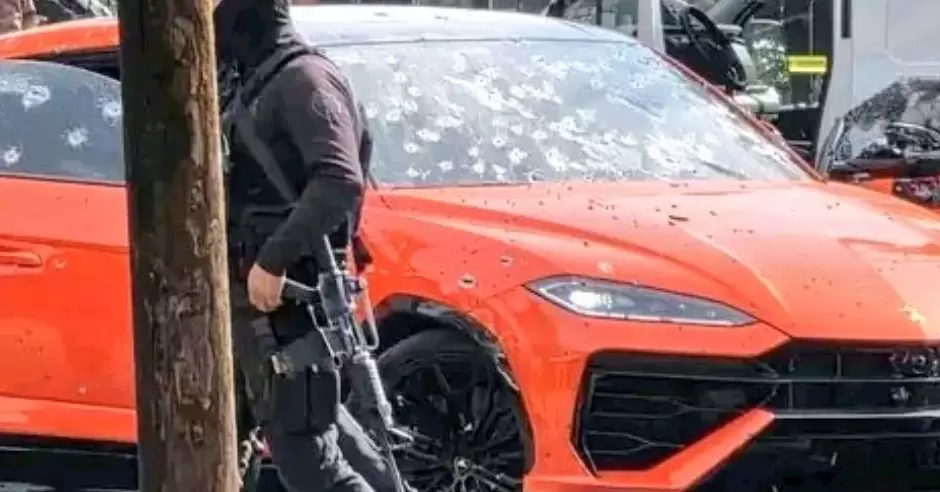 En el lugar quedaron el vehículo de lujo y las dos camionetas de los guardaespaldas con decenas de impactos de bala.