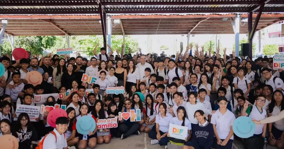 "Fíjense como literalmente nos abrieron la puerta de esta escuela secundaria para cerrarle las puertas a la drogadicción y a las adicciones, y por eso les agradecemos infinitamente", expresó Toño Astiazarán ante estudiantes, docentes, directivos y padres de familia.