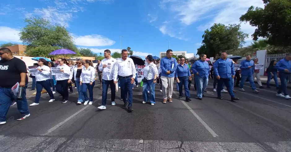 El contingente partió de Rectoría y recorrió los bulevares Rosales e Hidalgo, donde realizó una escala en las oficinas del Isssteson, para concluir frente al Palacio de Gobierno.