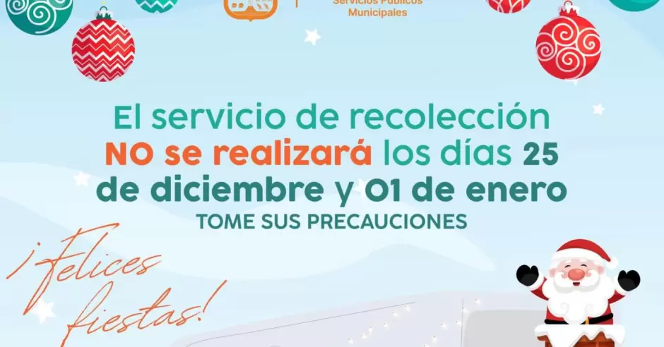 El servicio de recolección de basura no se brindará los días 25 de diciembre y 1 de enero, por tratarse de días inhábiles, informó Sergio Pavlovich Escalante.