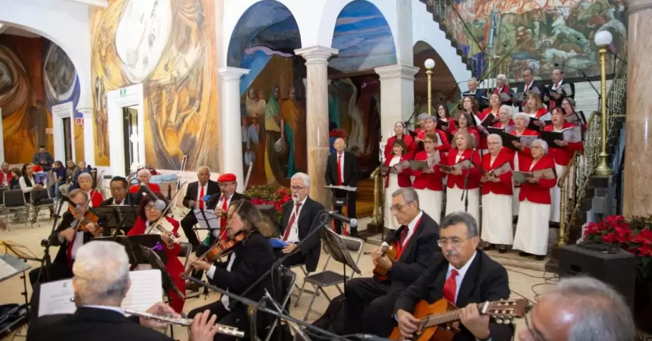Hermosillo.- Como cada año, Isssteson, a través de la Casa Club del Jubilado y Pensionado, llevó a cabo el tradicional Concierto Coral Navideño en las escalinatas de Palacio de Gobierno.