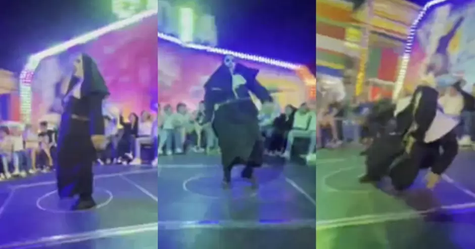Este hecho no detuvo el ambiente que traían los asistentes en el juego mecánico ni mucho menos a la " Monja", quien en cuestión de segundos se levantó para seguir animando la noche de las personas.
